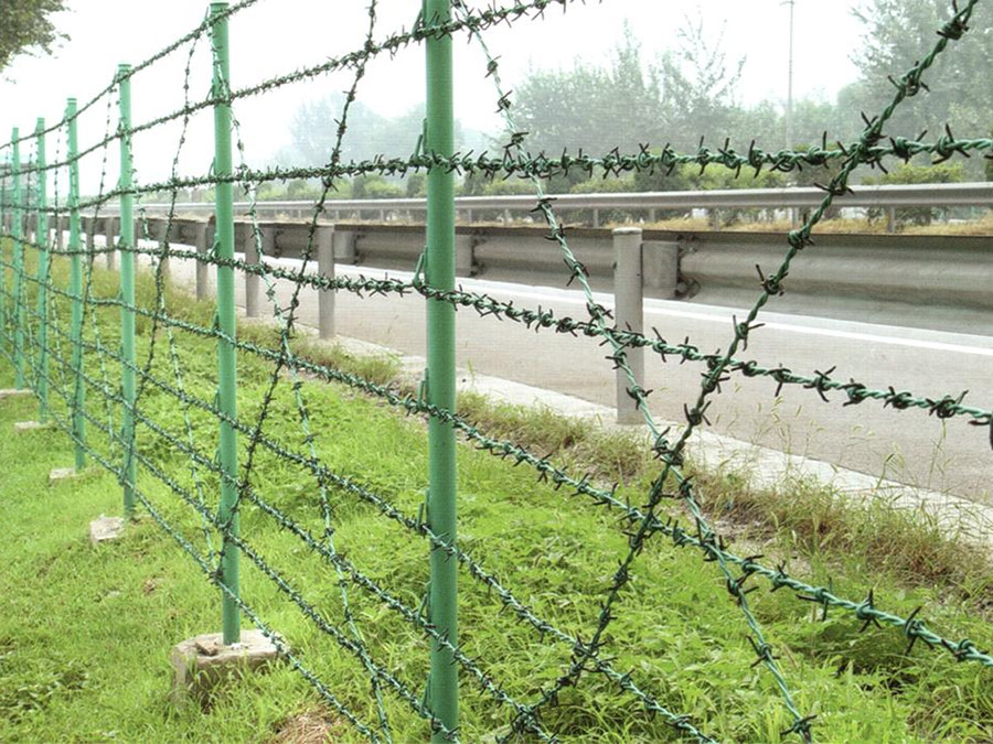 刀片刺绳按照安装方法不同可分为:(蛇腹式) 螺旋式刀片刺绳,直线型刀片刺绳,平板式刀片刺绳,刀片刺绳焊接网等。片刺绳按照安装方法不同可分为:(蛇腹式) 螺旋式刀片刺绳,直线型刀片刺绳,平板式刀片刺绳,刀片刺绳焊接网等。是在两条刀片刺网之间以不锈钢片和镀锌钢片强力夹扣,展开后即呈交叉状。用途:本产品广泛用于动物养殖、农林防护、公园围栏、体育场等。