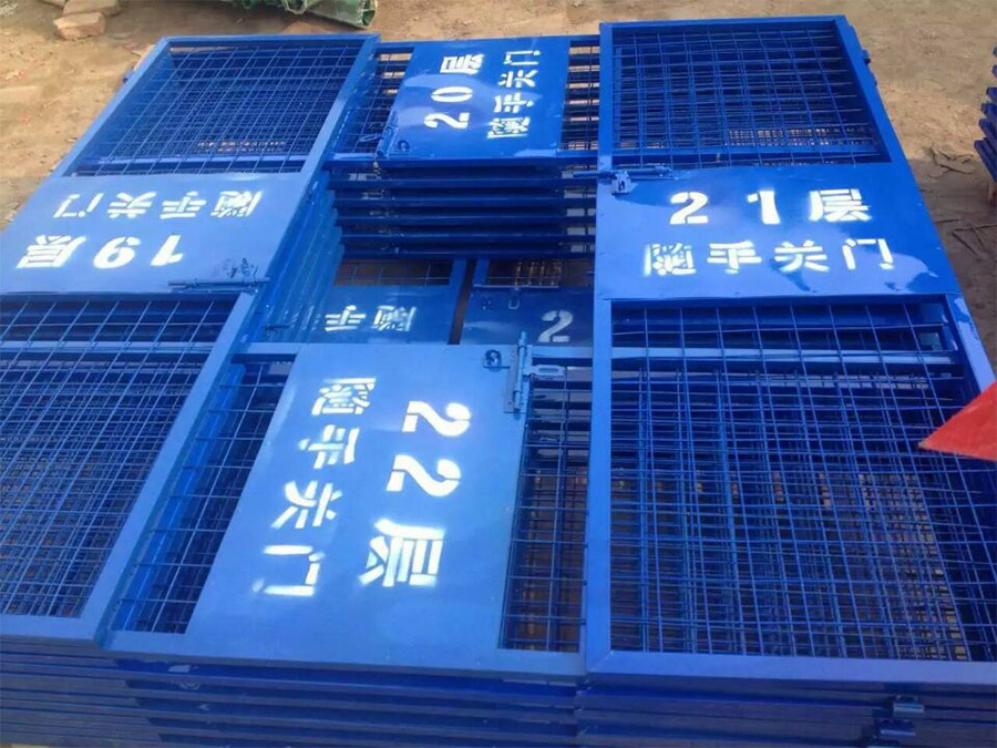 电梯安全防护门全部由钢结构组成。钢材采用标准材料,制作严格按图施工,尺寸正确,焊接点牢固,达到防护之目的,电梯安全门采用柠檬黄色,门下部档架板采用黄、黑间隔。电梯防护门是建筑施工现场预防人身伤害的防护设施,它适用于各类建筑施工工地。